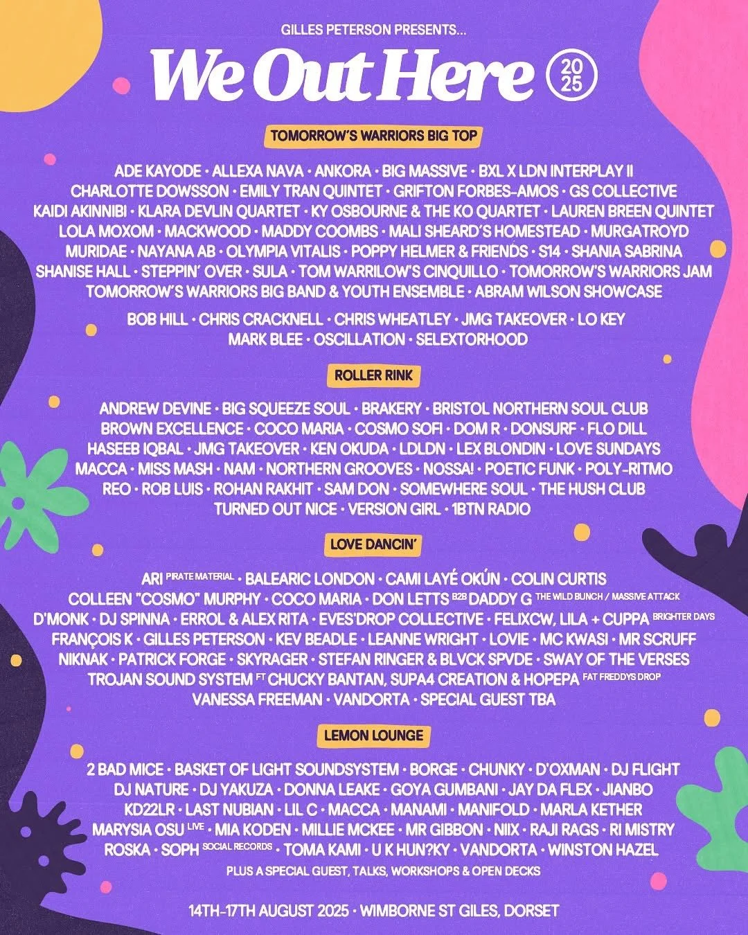 DJ’s : ROBERT LUIS, ALICE RUSSELL, WHEELUP, BUCK ROGERS, FOOTSHOOTER, STEVEN BAMIDELE, SLOWE, RHYS BAKER & LUCY MICHAEL